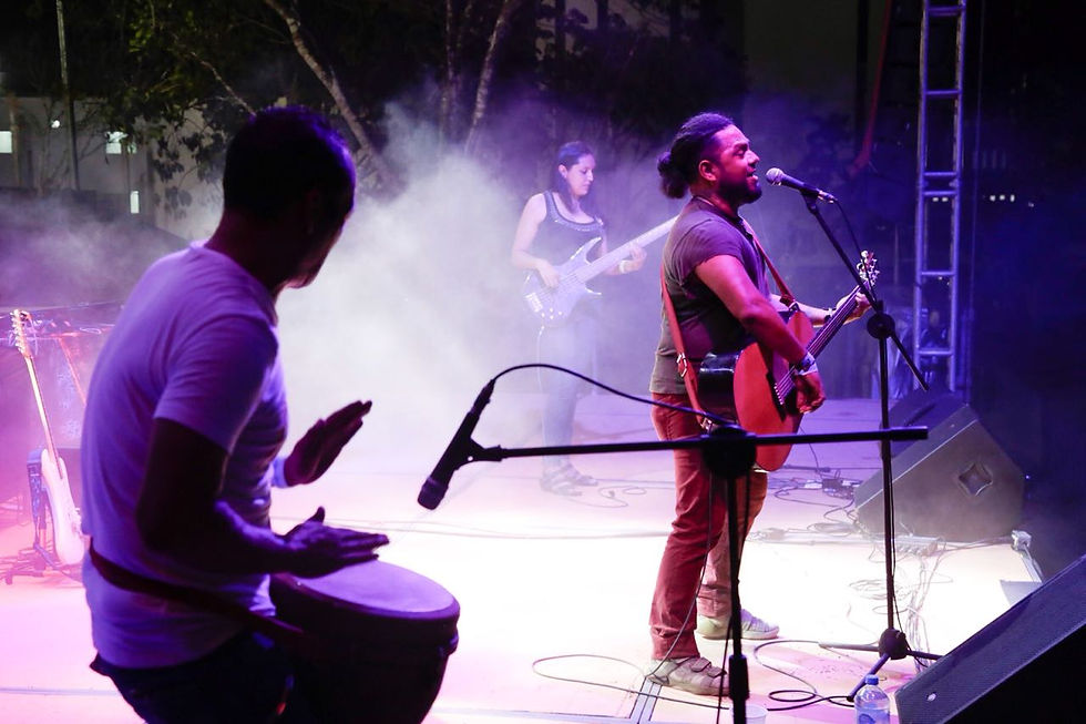 PLAYA DEL CARMEN, 14 de julio.- Grupos locales de música engalanaron esta noche el escenario del Teatro del Pueblo en la Feria Playa del Carmen 2018, en el que interpretaron sus canciones dedicadas en algunos casos a esta ciudad.