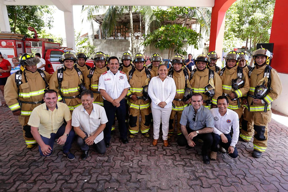 PLAYA DEL CARMEN, 27 de septiembre.- La Presidenta Municipal de Solidaridad, Cristina Torres Gómez, entregó al personal de la Dirección de Bomberos equipo nuevo especializado y de protección para salvaguardar su integridad, al brindar los servicios de rescate o atender emergencias ciudadanas.