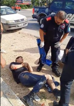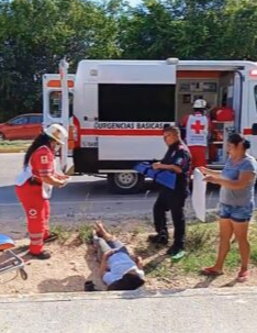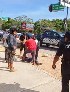 Playa del Carmen, Q.ROO, 31 de julio.- Una pareja que viajaba en motocicleta resultó con varias lesiones, luego que fuera embestida por una camioneta que intentó “ganarle al rojo” del semáforo, en el cruce de las avenidas Luis Donaldo Colosio y Lilis de esta ciudad.
