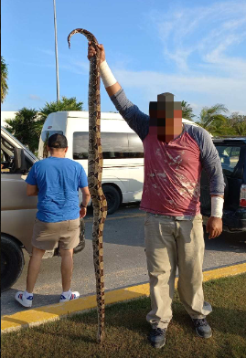 Atropellan a serpiente de dos metros en el bulevar Playa del Carmen