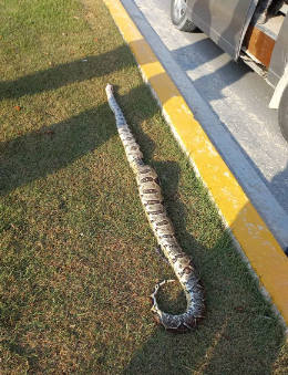 Una serpiente de casi dos metros de largo que cruzaba el bulevar Playa del Carmen, a la altura del hotel Grand Velas, fue aplastada por un vehículo que circulaba a exceso de velocidad.