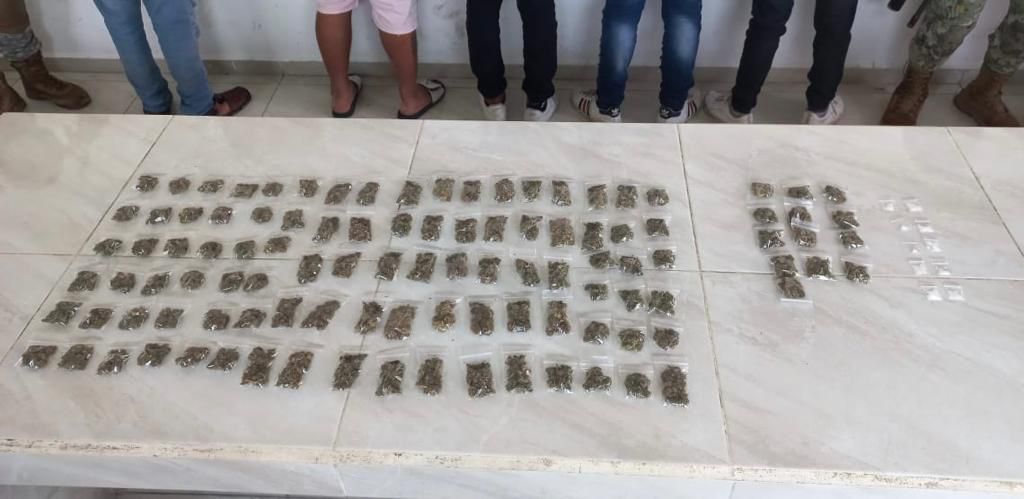 Finalmente se logró la detención de cinco presuntos narcomenudistas más que responden a los nombres de José “N” de 18 años originario de Chetumal, Alberto “N” de 18 años originarios de Veracruz, Jesús “N” de 25 años originario de Chiapas, Eliazar “N” de 21 años originario de Veracruz, y Hernán “N” de 30 años originario del Estado de México.