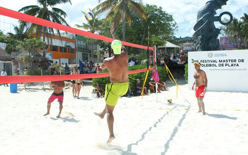 Playa del Carmen, a 26 de marzo del 2022.- Con la participación de cuarenta equipos de 8 países del mundo, este sábado se inauguró el Tercer Festival Máster Internacional de Voleibol de Playa, en las canchas instaladas en los arenales de playa fundadores, frente al parque Fundadores.
