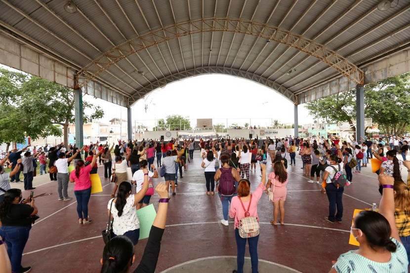 La marcha de las mujeres llegó hasta el domo del parque principal de Puerto Aventuras donde las mujeres líderes se expresaron para pedir el esclarecimiento total de los femenicidios y justicia para las víctimas de este delito que la ONU señala ya como una pandemia mundial.
