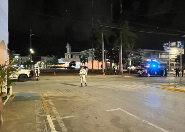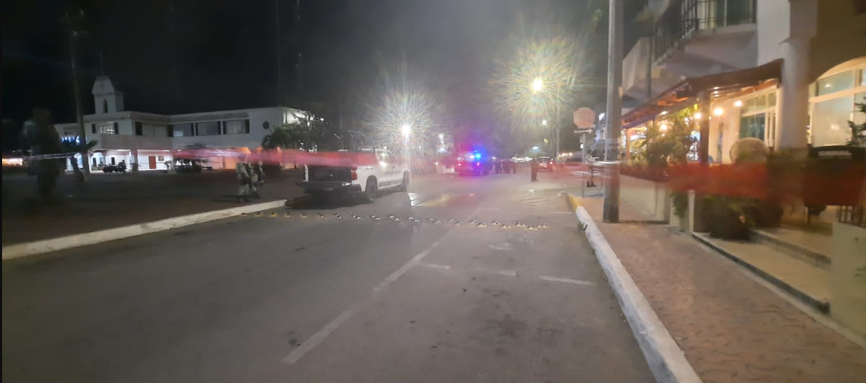 Dispara sujeto contra una patrulla y huye, a un costado del Palacio Municipal en Playa del Carmen
