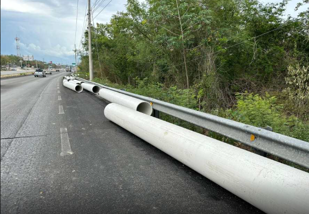 A consecuencia de esto, los tubos terminaron sobre la carpeta asfáltica, lo que provocó el cierre vehicular en este tramo.