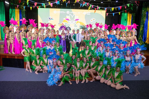 La velada estuvo engalanada con el concurso de comparsas en ritmos de rumba, samba y mambo, donde el talento y la creatividad brillaron en cada presentación, dando como resultado una difícil deliberación.