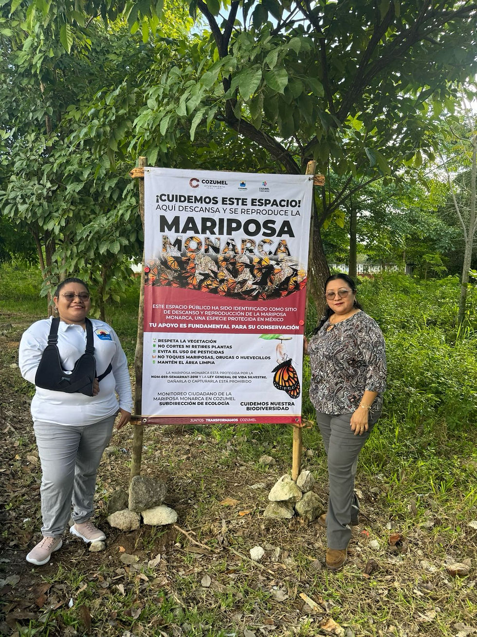 Cozumel, 4 de febrero de 2026. - El Gobierno Municipal de Cozumel a través de la Subdirección de Ecología, informó a la ciudadanía que el municipio se integró a los registros de monitoreo de la ruta de la mariposa monarca, en coordinación con el biólogo Adrián Tun, de la organización Alas Mayas.